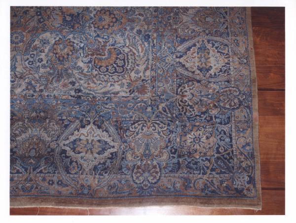 - NOTIZIE STORICO CRITICHE Probabilmente si tratta di un tappeto concepito per il mercato occidentale a partire dalla fine dell'ottocento. Suffraga questa ipotesi anche la cromia usata che vede una prevalenza di blu, grigio perla e tocchi di rosa.