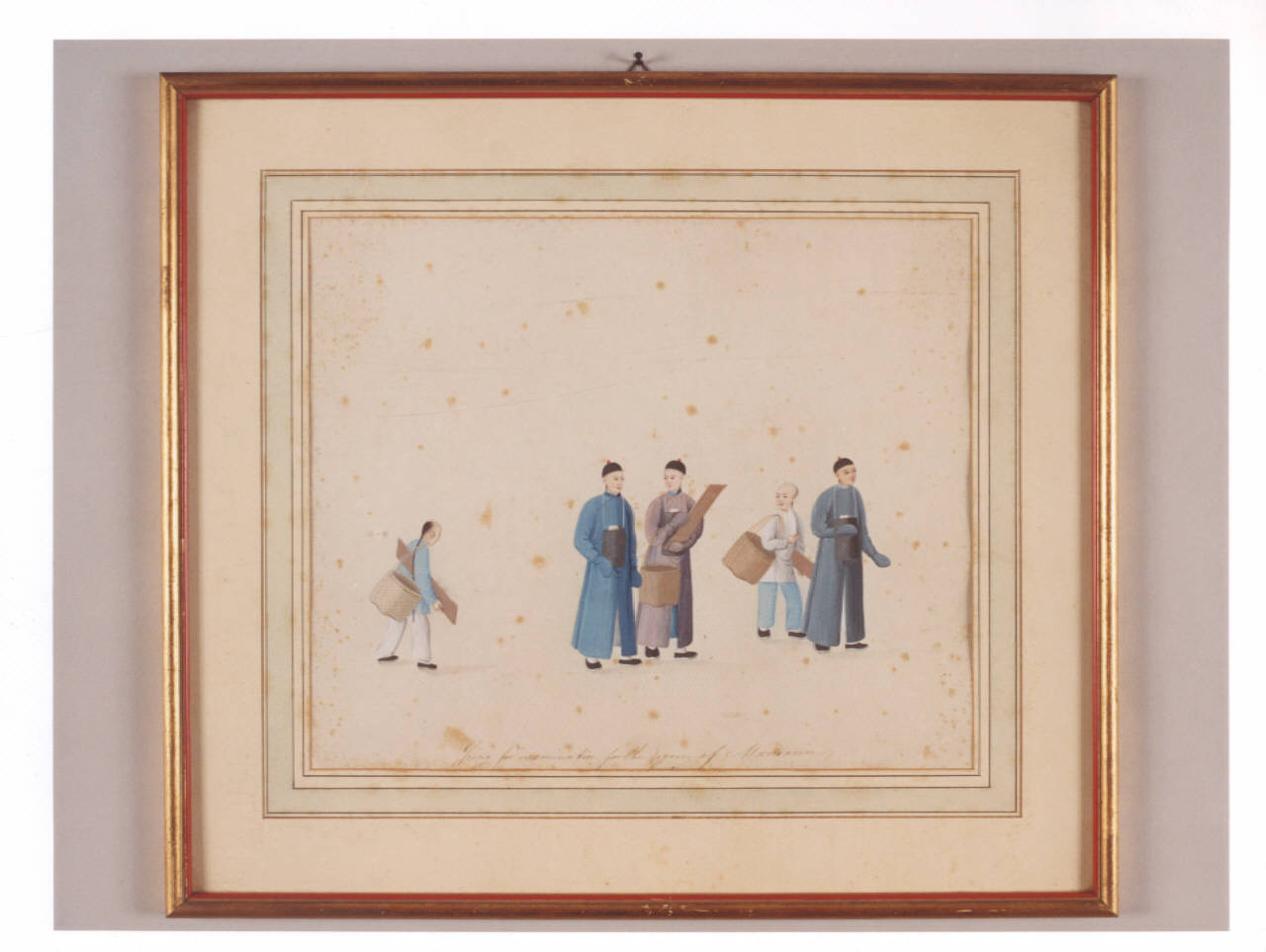 Tempera raffigurante figure maschili di venditori.