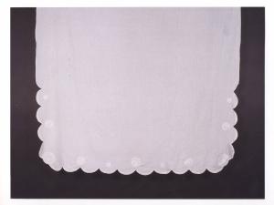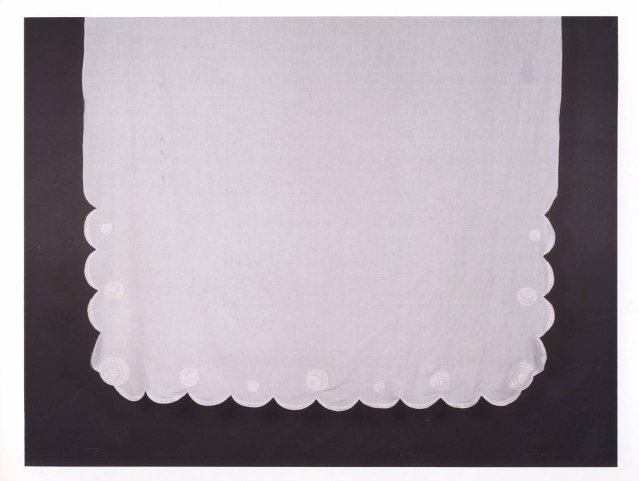 Tovaglietta in lino con ricamo a punto pieno con piccoli tondi e smerlo solo nei lati corti.
