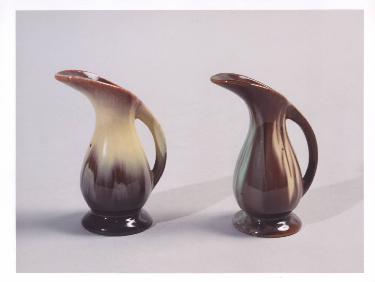 Coppia di lattiere; piede rotondo, ansa semplice e beccuccio accentuato.