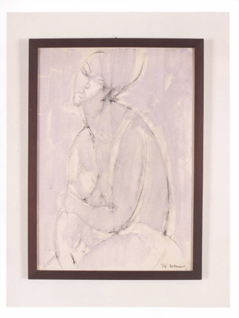 Delicato acquerello dal tratto veloce e sicuro raffigurante una giovane donna seduta.