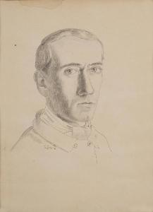 Ritratto di uomo con il volto posizionato di tre quarti a matita su carta.