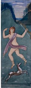 Cartone preparatorio con scena di caccia in cui la dea Diana ha appena scoccato una freccia durante la corsa.