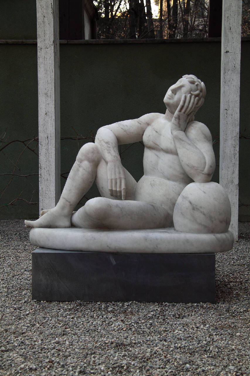 - NOTIZIE STORICO CRITICHE L'opera, donata al FAI da Claudia Gian Ferrari, è una replica in marmo del gesso del 1921 oggi alla Galleria Nazionale d'Arte Moderna di Roma.\nnni Venti vedono in Martini l¿adesione a Valori plastici: il superamento del naturalismo ottocentesco in direzione di una maggior essenzialità e chiarezza. ¿Il dormiente¿ si caratterizza così per le sue forme, tra costruzione accademia, robustezze e semplificazioni metafisiche: solidi perfetti che si innestano l¿uno nell¿altro a creare una complessiva solidità che non esclude alcune tensioni costruttive nell¿innesto delle parti. Martini non perde di vista, pur avendo chiara l¿idea complessiva dell¿opera, la possibilità di racconto in alcuni dettagli quali i capelli, le mani, il naso.