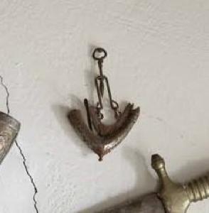 Il piccolo corno da caccia, in metallo decorato e dotato di catenella, è \nparte di un insieme di 8 oggetti di uso militare, color ottone. L'insieme è databile al XIX secolo e contiene anche la spada di Giuseppe Roi (1894-\n1947), padre del donatore del FAI.