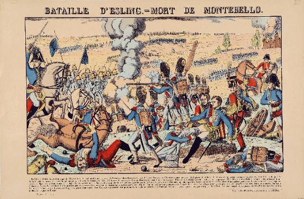 Stampa con soggetto napoleonico (Bataille d'Esling - Mort de Montebello). soggetto napoleonico