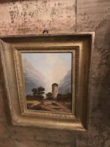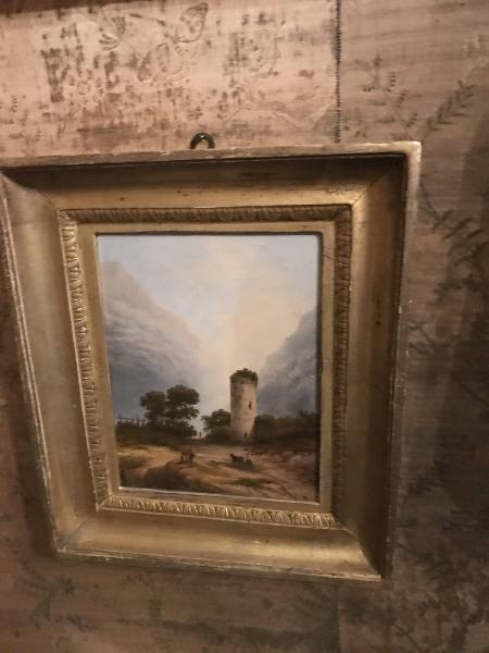 - NOTIZIE STORICO CRITICHE La coppia di dipinti, a olio su cartoncino, raffigura due paesaggi. Nel primo, di ambientazione invernale, un¿abbazia medievale e un¿abitazione \nsi affacciano su una piccola piazza, al centro della quale si erge una scultura; qui sostano due uomini, mentre un cavallo traina un carro coperto. Il secondo, invece, è un paesaggio montano; su un¿altura rocciosa fianc\nheggiata da alberi e circondata da alture scoscese si innalza una torre cilindrica in rovina, di fronte alla quale si osservano due figure e un animale. I due dipinti anonimi sono da collegare alla pittura di paesaggio lombarda del XIX secolo.