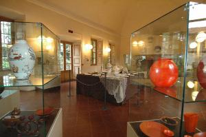 - NOTIZIE STORICO CRITICHE Fondata a Laveno nel 1856, la ditta di Caspani, Carnelli e Revelli nel 1883 assunse il nome di Società Ceramica Italiana, divenendo una vera autorità nel settore. Numerosi furono i successi che ottenne nel corso della sua secolare storia, costellata anche dalla partecipazione e manifestazioni ed Esosizioni Internazionali, di cui tappa fondamentale fu costituita dalla nomina di Guido Andlovitz di direttore artistico e designer avvenuta nel 1923. Sotto la sua guida la manifattura conquistò un vasto pubblico, ottenendo un vasto consenso anche tra i critici e gli addetti ai lavori, come nell'ambito della prima Biennale di Monza del 1923. Un successo ampliatosi due anni dopo, quando i risultati ottenuti furono consolidati nella seconda edizione della medesima esposizione. Qui, nelle sale della II Biennale di Monza, tutti poterono respirare la sincera rivalità industriale tra la Richard-Ginori, con Gio Ponti, e la Società Ceramica Italiana (SCI).\nAndlovitz collaborò con l'azienda per quasi quarant'anni, introducendo nella produzione il principio della serialità per ampliare il bacino di utenza, abbassando i costi, diversificando i prodotti a seconda del pubblico di riferimento, ma mantenendo sempre alti i livelli dello stile e delle decorazioni di indiscutibile qualità ed eleganza. Arte e riproducibilità tecnica furono dunque i due capisaldi di Andlovitz, per il quale la diffusione della bellezza non costituiva unicamente una possibilità di espansione aziendale, ma anche un diretto di ogni singolo cittadino.\nLe sue creazioni e la sua produzione sono esposte nella sala a lui dedicata al Museo Internazionale Design Ceramico di Cerro situato presso il cinquecentesco Palazzo Perabò, che dal 1971 testimonia la storia ceramista del territorio che costeggia la sponda lombarda del Lago Maggiore. In primo piano sono posti i cosiddetti "articoli fantasia": una serie di realizzazioni in cui stile e forma si intrecciano in un continuo scambio. I motivi decorativi, figurativi, stilizzati o geometrici si alternano tra loro, arrivando perfino a modificare la forma stessa di vasi, cache-pot, scatole e candelieri. Questa vasta produzione - nel 1939 è pubblicato a colori un repertorio con 130 diversi modelli - testimonia la modalità operativa della Società Ceramica Italiana e di Guido Andloviz, che discostandosi da processi prettamente artigianali predilige criteri di industrializzazione del processo produttivo, al quale corrispondono criteri di economicità e ottimizzazione dei tempi di realizzazione e consegna dei lavori finiti. La medesima forma diviene, talvolta., il supporto per creare composizioni differenti con dipinti motivi eterogenei o un medesimo motivo decorativo è riproposto su forme differenti dando origine a un'offerta vastissima che si impone sul mercato anche per costi più contenuti. Seguendo questa idea di possibili e continue 'piccole' variazioni il numero degli oggetti cresce esponenzialmente anche in funzione dell'impiego di differenti colorazioni, smalti e finiture superficiali, spesso offerte nelle versioni lucida, opaca e sgocciolata.\nAl centro della sala è collocato l'imponente servizio da tavola "Vecchia Milano", presentato alla prima Biennale di Monza del 1923 ottenendo un enorme successo nel decennio successivo soprattutto in ambito milanese. Il servizio è ispirato alla tradizione settecentesca e, con il passare degli anni, si è arricchito di nuovi elementi e possibili variazioni, a conferma della politica della società che, modulando la decorazione, presentava una pressoché infinita serie di servizi, offerti anche con considerevoli differenze di prezzo. \nNella sala è esposto il decoro 6641 con le architetture del Lago Maggiore, creato tra il 1926 e il 1927, che costituisce un'ideale carrellata per immagini dipinte degli scorci più suggestivi di Laveno Mombello, del Lago Maggiore e delle Isole Borromeo.