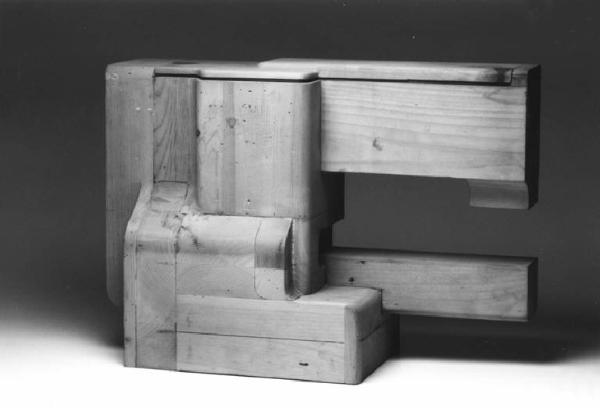 Modello di studio per macchina da cucire portatile/da tavolo. Morfologicamente è composta dalla compenetrazione di volumi diversi per forma e sezione ben definiti funzionalmente.