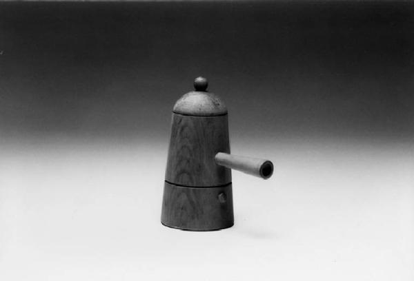 Modello di studio per caffettiera alternativa alla classica "moka". E' composta da un tronco di cono leggermente rastremato verso l'alto, coronato da un coperchio a calotta sferico sormontata da una piccola sfera che funge da pomolo. La maniglia è costituita da un tronco di cono rastremato collocato perpendicolarmente al corpo della caffettiera.