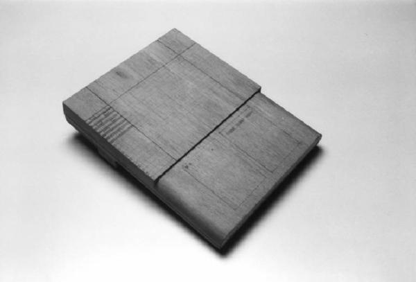 Modello di studio per segreteria telefonico composta da un solido prismatico a pianta rettangolare, leggermente inclinata in modo da favorire la digitazione da parte dell'operatore.