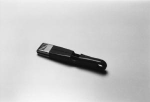 Modello di studio per accendigas realizzato con un prisma a sezione ellittica rastremata in modo tale che le due ellissi alle estremità sono tra loro ruotate di 90°. Questo espediente è volto a migliorarne la prensibilità oltre che alle valenze estetiche. Un'estremità è grigliata per permettere l'emissione della scintilla; l'altra presenta un foro per appendere l'accendigas ad un gancio.