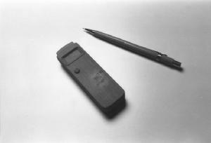 Modello di studio per cronometro tascabile composto da un solido prismatico a pianta rettangolare con piccole parti in leggero aggetto e scavate.