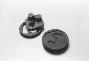 Modelli di studio per giocattoli per bambini neonati composti da tre parti concentriche ad incastro: una freccia stilizzata, un rombo ed un cerchio (la freccia è più dissimulata rispetto al precedente modello della scheda 43); una S, un rombo ed un cerchio.