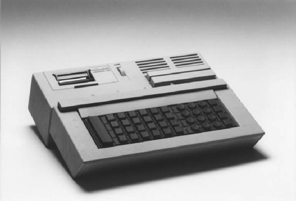 Modello di studio per calcolatore elettronico da tavolo costituito da un solido prismatico a pianta rettangolare e a sezione a 'trapezio irregolare' realizzando, in tal modo, una inclinazione del piano di lavoro più favorevole per l'utilizzatore. Sul lato superiore è ricavata la tastiera, il vano portarotolo per la stampa, affiancato da una griglia con fessure e da due "cartucce" a pianta rettangolare e a sezione costante alloggiate in appositi vani.