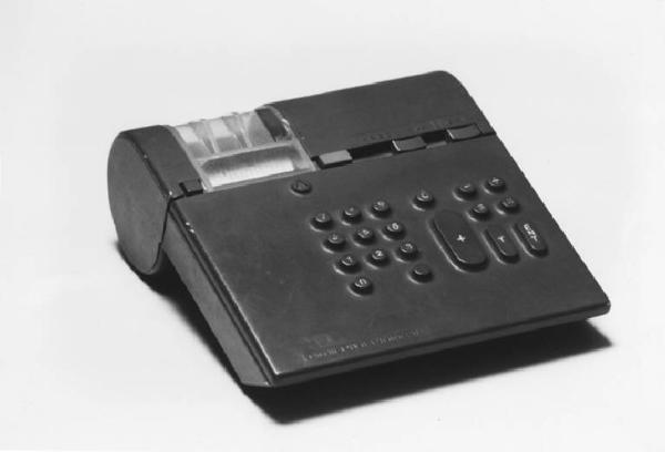 Modello di studio per calcolatore elettronico da tavolo costituito da un solido prismatico a pianta rettangolare e a sezione a P realizzando, in tal modo, una inclinazione del piano di lavoro più favorevole per l'utilizzatore. La sezione a P deriva dalla forma circolare del rotolo di carta contenuto nella parte posteriore del calcolatore. Sul lato superiore è ricavata la tastiera, e il vano portarotolo per la stampa.