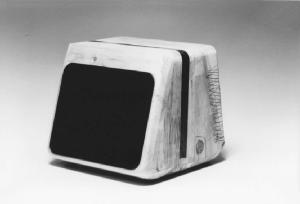 Modello di studio per televisore composto da un solido prismatico a pianta rettangolare e sezione trasversale trapezoidale.
