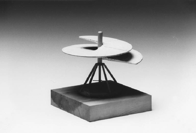 Modello di studio per elicottero che riproduce un progetto di Leonardo da Vinci.