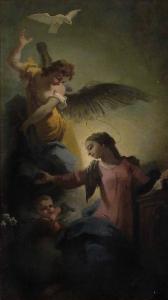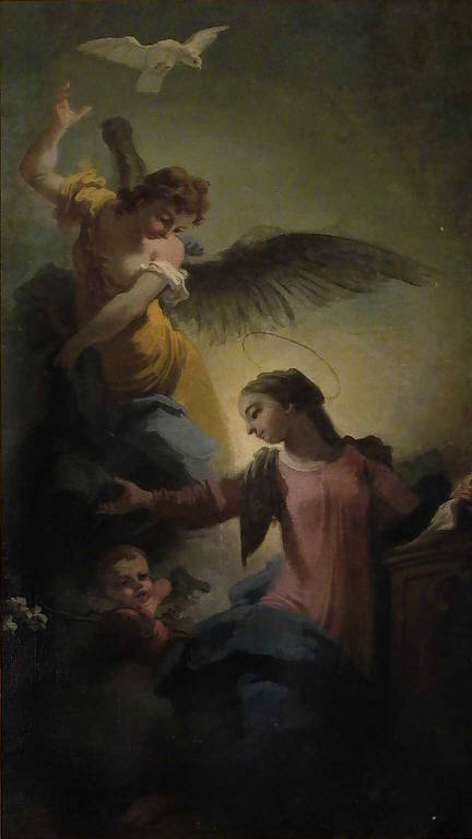 - NOTIZIE STORICO CRITICHE Non si conosce con esattezza la provenienza di questo dipinto; Terratoli (1991, p. 35), che lo attribuisce al clarense Giuseppe Tortelli, ipotizza che sia proveniente, insieme alla pala raffigurante la Pietà con san Giovanni di Dio, santa Teresa d'Avila e angeli (inv. n. D00009) dall'Ospedale Mellini di Chiari. Dal punto di vista stilistico l'opera non pare attribuibile al Tortelli per il troppo divario esistente tra i modi dell'artista bresciano e la chiarissima matrice veneziana del dipinto, da collocare all'interno di quella che Rodolfo Pallucchini chiama la corrente patetico-chiaroscurale (La pittura nel Veneto. Il Settecento, vol. I, Milano 1994) della quale sono maggiori esponenti Federico Bencovich e il giovane Giovan Battista Piazzetta. Proprio ai caratteri di quest'ultimo sembra far riferimento l'opera clarense, specialmente per i tagli chiaroscurali decisi, la dolcezza sdilinquita delle forme e la pennellata larga che costruisce ampie superfici sulle quali la luce scivola seppur nel greve dell'insistenza dei contrasti di chiaroscuro tipici della pittura del primo Piazzetta e del Bencovich. A questa Annunciazione clarense si possono raffrontare alcune tele dell'artista veneziano, collocabili negli anni Dieci del Settecento, come le quattro tele raffiguranti Contadini (divise tra i musei di Boston e Salisburgo), la Madonna con il Bambino (Detroit, Institute of Arts), frammento della pala della Madonna col Bambino e l'Angelo custode, eseguita verso il 1718-1719, e il Sacrificio di Isacco (Dresda, Gemäldegalerie) di qualche anno successivo. In tutte domina questo senso fortemente chiaroscurale della composizione, desunto dalla scuola dei Tenebrosi, insieme a quanto desunto dall'insegnamento di Giuseppe Maria Crespi; esperienze che portano l'artista a sviluppare fin dalle prime opere il suo metodo di lavoro, sintetizzato da Pallucchini nella "quasi ossessiva fiducia in una forma conchiusa, sensibilizzata nella sottile discriminazione di ombra e di luce" (Pallucchini, cit., p. 299).