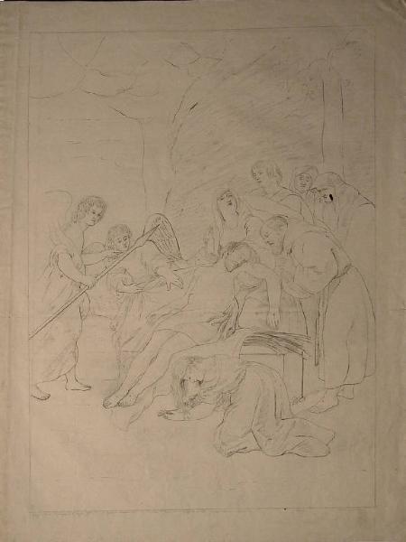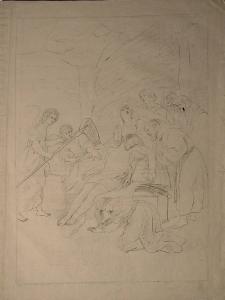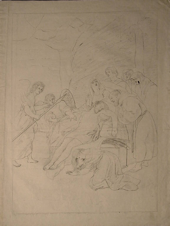 - NOTIZIE STORICO CRITICHE Come testimonia la nota manoscritta presente sul foglio e riconoscibile come autografa di Pietro Bartolomeo Repossi, questo disegno venne realizzato dal collezionista clarense quale copia di una stampa di sua proprietà, ma così mal ridotta da essere malamente leggibile. Tale stampa è ancora conservata nel fondo calcografico della Fondazione Morcelli-Repossi (cfr. I00556) e riproduce a sua volta un'invenzione di Rubens.