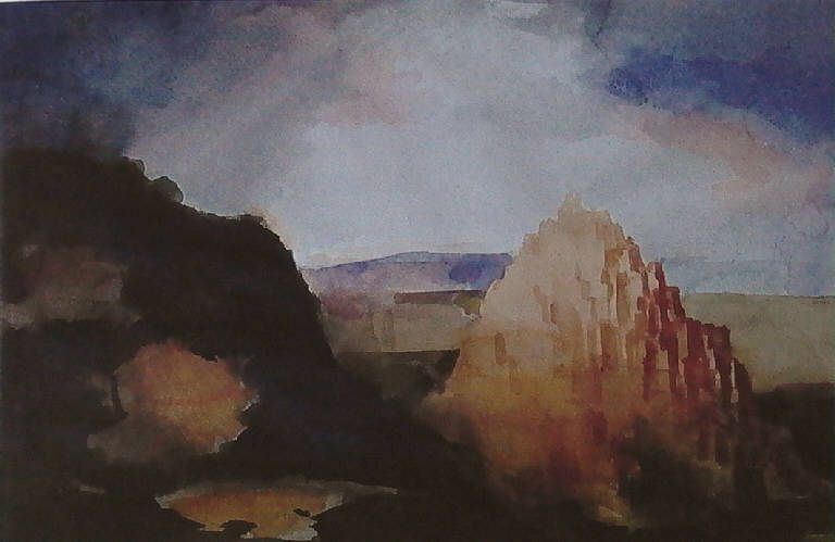 - NOTIZIE STORICO CRITICHE La riscoperta del paesaggio attraverso la dimensione del mito permette a Repossi di avvicinarsi alla realtà dando ad essa un senso diverso, recondito, non più figurativo nel senso più semplice del termine. Ora ciò che è figurato è solo in apparenza simile a quanto si vede. Al contrario una continua risignificazione degli oggetti permette di sentirli contemporaneamente vicinissimi e lontani, perduti nel tempo mitico della memoria. Efficace a tal proposito è l'uso dell'acquerello che risolve la visione in una sorta di appunto di viaggio, di stenografia dell'anima e del personale sentimento del tempo.