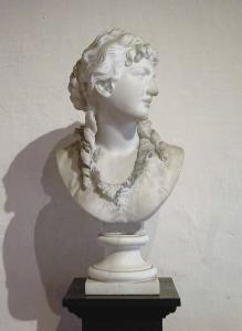 - NOTIZIE STORICO CRITICHE L'iscrizione posta sul retro del busto indica in quest'opera la prima autonoma compiuta dal Ricci, allora ventiduenne, al compiersi dei suoi studi braidensi sotto la guida dello Spertini. In tal senso il busto, donato alla città di Chiari e depositato dal Comune in Pinacoteca, è un esempio della prima produzione ricciana che, come evidenzia Corradini (1994, p. 27) mostra una risorgente ricerca di classicità ben visibile nella resa netta del profilo che tenta di affrancarsi dal dominante clima verista ma con l'intento di orientarsi verso il nascente simbolismo verso il quale il Ricci inclinerà nella fase centrale della sua carriera. Tale intento è perseguito dal giovane artista attraverso una semplificazione delle forme e una pulizia nella resa dei particolari che sembra dimenticare (o eliminare) elementi del costume contemporaneo quali la descrizione dell'abito e l'acconciatura 'alla moda' per concentrarsi su una stilizzazione tra l'accademico e il classicista risolta qualche anno più avanti con un ancora maggiore addolcimento delle forme e un più sentito trasporto introspettivo.