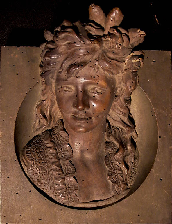 - NOTIZIE STORICO CRITICHE Opera graziosa di non altissima qualità. Raffigura una giovane donna con capelli fluenti, segnati dalla presenza di una rosa (indice, forse, che potrebbe trattarsi della rappresentazione allegorica di una Flora). I caratteri stilistici permettono di avanzare l'ipotesi che si tratti di un manufatto assegnabile ai primi decenni del Novecento in piena cultura Liberty.