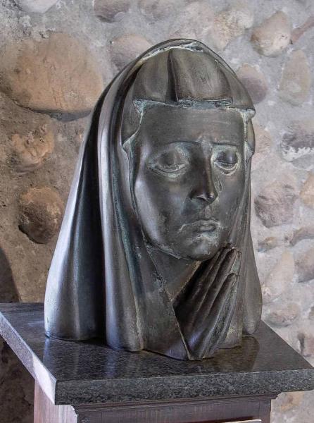 - NOTIZIE STORICO CRITICHE Assegnabile alla produzione della metà degli anni Quaranta per la purezza del modellato e l'attenzione per lo scavo psicologico, la piccola scultura è accostabile, stilisticamente, al grande Crocifisso per la Cappella dei Caduti nel Cimitero di Chiari del 1946-1947, ma ancor più al tabernacolo in fusione posto nella medesima cappella. La figura della donna orante, una sorta di Madonna addolorata, si avvicina nel tratto e nella tensione del modellato proprio a queste opere eseguite all'indomani del secondo dopoguerra.