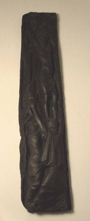 - NOTIZIE STORICO CRITICHE L'apparizione delle figure in questo bassorilievo è quasi fantasmatica e affidata all'apparizione momentanea che sembra essere pertinente non solo alla tematica ma alla stessa lavorazione del tronco di ebano che non viene regolarizzato ma mantiene la sua forma ed è solo scavato e scolpito per accogliere la scena sacra. Il tema della risurrezione è trattato qui con grande suggestività: al Cristo risorto che si stende per quasi tutta la superficie della tavola fanno da contorno figure di angeli e di uomini che riempiono tutto lo spazio disponibile. Le fisionimie e le forme sono tese, spigolose, il chiaroscuro violento e tagliente. Siamo davanti a un evento traumatico, drammatico e particolarmente significativo se lo si inserisce all'interno del percorso biografico dell'artista.