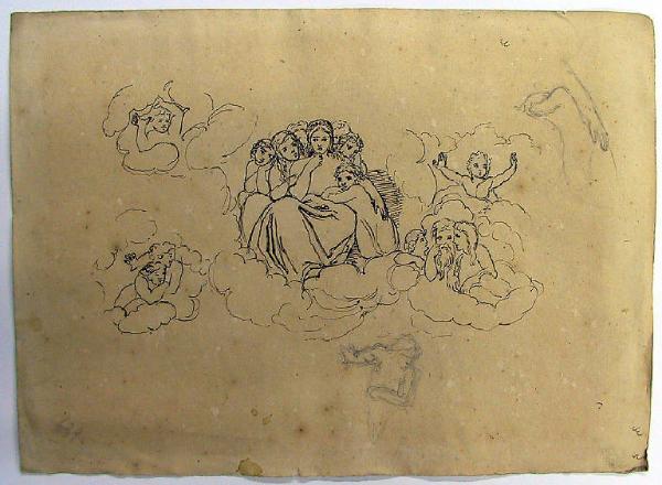- NOTIZIE STORICO CRITICHE Il foglio non porta scritture esplicative, ma è raccolto entro la stessa cartelletta dei disegni dedicati alla Divina Commedia. Rappresenta forse l'"Antica Rachele" nominata da Beatrice (Inf., II, 102) fra i figli di Giacobbe, con il fanciullo Beniamino.