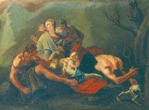 - NOTIZIE STORICO CRITICHE Il dipinto riproduce l'angolo inferiore destro del quadro realizzato da Cesare Ligari nel 1740 dal titolo "Il serpente di bronzo", oggi conservato alla Pinacoteca Ambrosiana di Milano e per molto tempo ritenuto opera di Tiepolo. Si tratta certamente di una copia eseguita dallo stesso Cesare o da Angelo Ligari: risulta estremamente difficile attribuirlo all'uno o all'altro artista, dal momento che Angelo seppe copiare alla perfezione altre opere degli antenati (vedi il ritratto di Pietro N.I.L. 367).