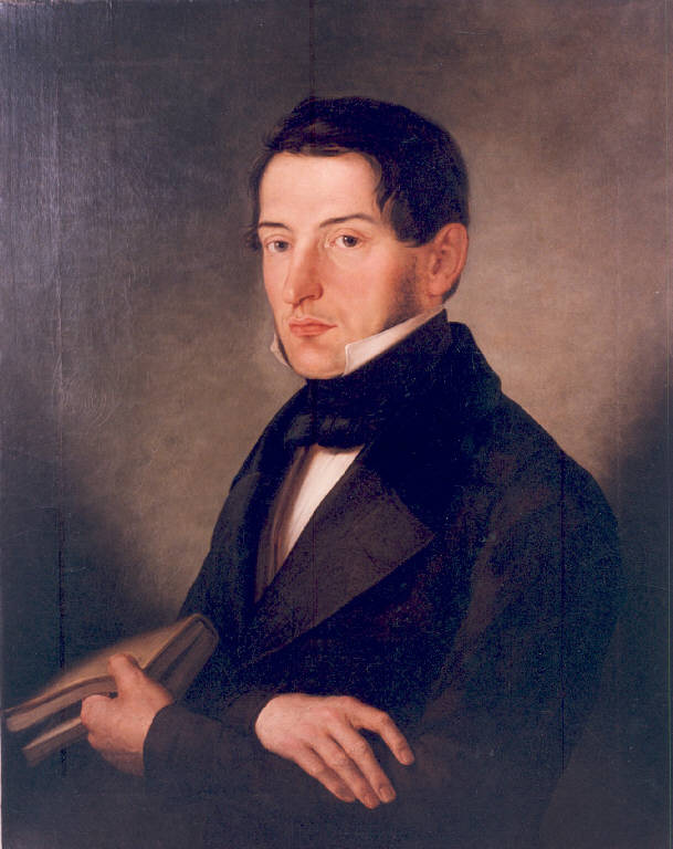 - NOTIZIE STORICO CRITICHE Nell'elenco delle opere di Caimi redatto dal fratelo del pittore si parla di due ritratti a olio di benefattori nell'Ospedale di Sondrio. La quadreria tuttavia è composta da una mezza dozzina di dipinti databili agli anni dell'attività del Caimi e in mancanza di documenti le attribuzioni possono basarsi solo su raffronti stilistici. L'identità del personaggio è sconosciuta, mentre l'attribuzione al Caimi, oltre al buon livello esecutivo, è supportata da alcuni dettagli tipici della sua ritrattistica.