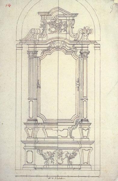 - NOTIZIE STORICO CRITICHE Nel Mastro N (c.81v) Ligari scrive che Carlo Buzzi "ha riceuto il secondo dissegno l'anno 1737 per l'opera ordinatagli per la Cappella del Santissimo Rosario, col quale è unito quello per la cappella di S. Giuseppe", anche se il disegno si trovava nelle mani di Domenico Giuseppe Lavizzari dal 1733. Anche in questo caso i Buzzi ebbero in mano un disegno con le indicazioni di Pietro sui marmi da utilizzare, disegno non conservato, di cui il presente foglio rappresenta evidentemente uno studio preparatorio.
