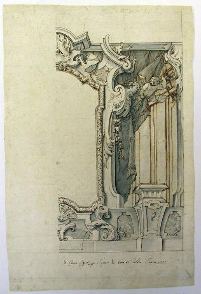 - NOTIZIE STORICO CRITICHE La decorazione dipinta doveva incorniciare la pala della "Gloria di San Lorenzo" realizzata nel 1750 dallo stesso Cesare per la chiesa di Villa. Scomparsa l'incornicatura durante i lavori di ampliamento della chiesa (1872-83), la pala è ancora in loco e la cornice del quadro coincide in effetti con la parte più interna del disegno.