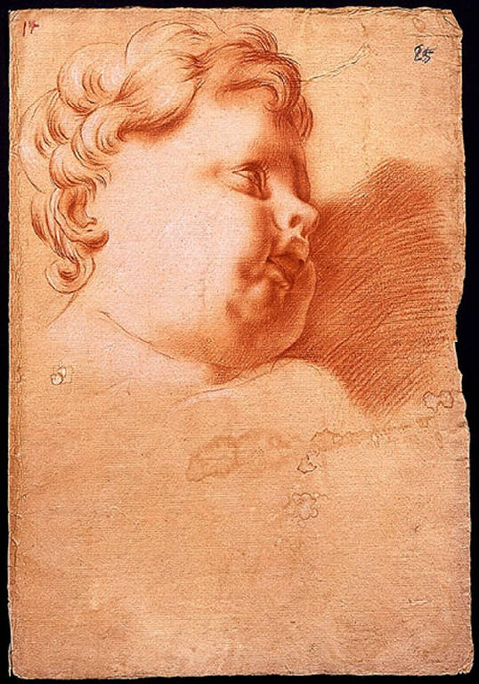 sanguigna e gessetto su carta preparata ocra-rosata
