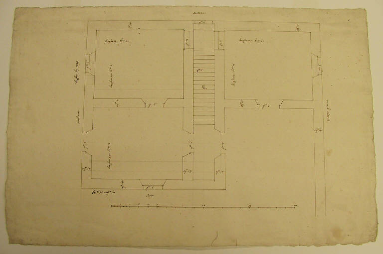 - NOTIZIE STORICO CRITICHE La pianta riprende lo schema del disegno N.I.L. 419, ma il muro di cinta già esistente viene utilizzato in parte come muro perimetrale dell'abitazione. Variano le dimensioni degli ambienti.