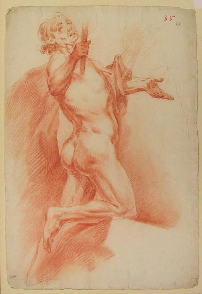 - NOTIZIE STORICO CRITICHE Dalla positura altamente patetica e declamatoria di questo e nudi simili l'artista desume il gestire di molti suoi personaggi. Anche questo potrebbe essere un beato del supposto "Giudizio Universale" (N.I.L. 343)