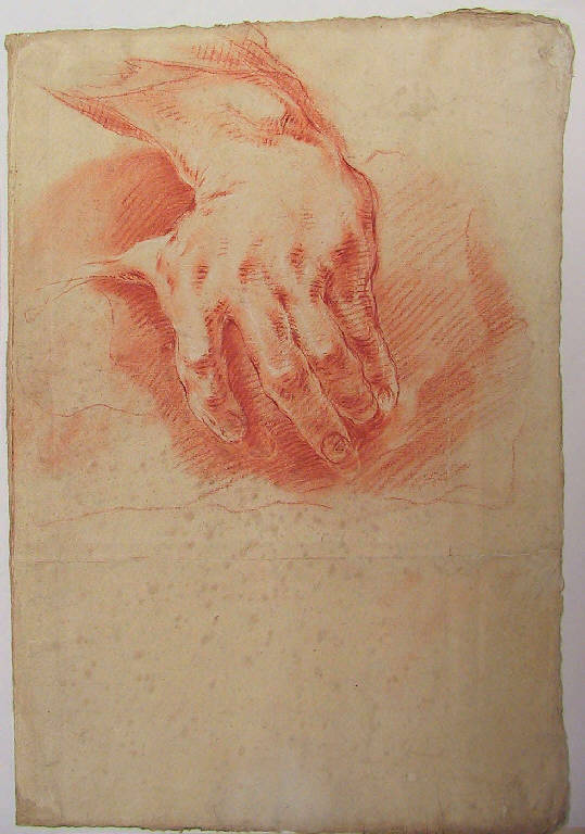 - NOTIZIE STORICO CRITICHE Il disegno è probabilmente ripreso da un rilievo di gesso simile a quelli che tuttora si conservano nello studio dei Ligari. In particolare si ricollega a quello schedato al N.I.L. 192. Le pieghe del foglio indicano che il disegno doveva essere inquadrato sotto vetro.