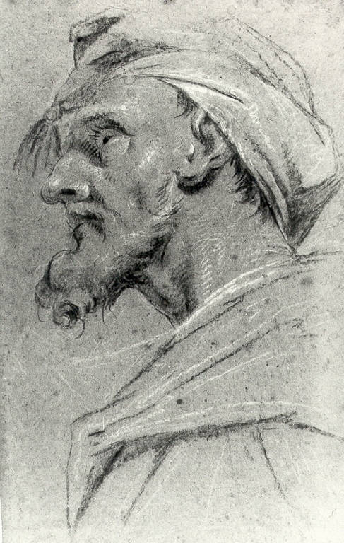 - NOTIZIE STORICO CRITICHE Il curioso berretto ricadente in avanti richiama il gusto venezianeggiante di Cesare e si ricollega in particolare ad una figura del Martirio di S. Bartolomeo affrescato nella parrocchiale di Domaso (1758). Condotto con franchezza e bravura, il disegno si direbbe preso dal vero.