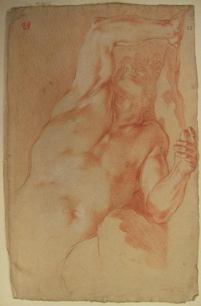 - NOTIZIE STORICO CRITICHE Il disegno è identico a quelli schedati al N.I.L. 344 e 345. Non è possibile stabilire dei tre l'ordine cronologico. Sebbene il soggetto possa essere letto anche in senso verticale, si preferisce l'orientamento orizzontale per analogia ai molti disegni ligariani che rappresentano ignudi abbattuti. Nel supposto Giudizio Univesrale (vedi N.I.L. 343) questo potrebbe essere un dannato.