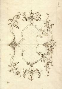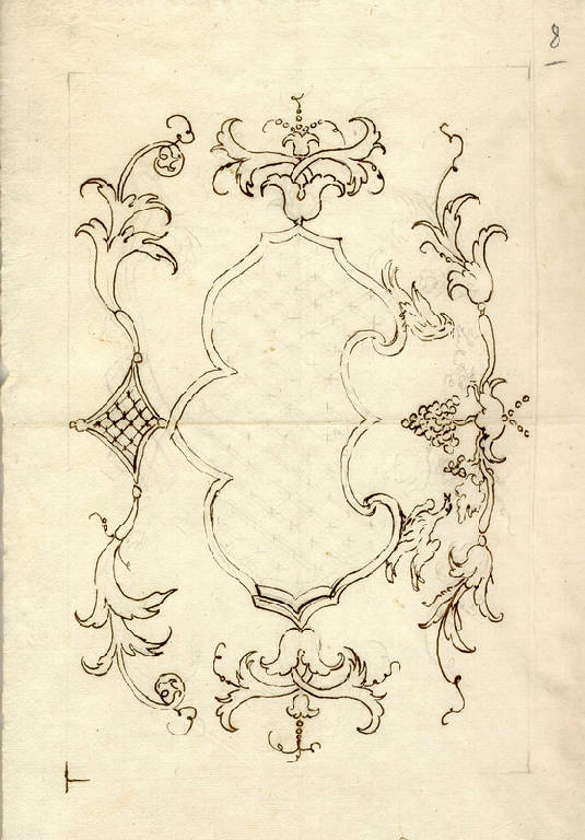 - NOTIZIE STORICO CRITICHE Il disegno è una variante, alquanto semplificata, del disegno schedato al N.I.L. 415. Le appendici decorative sono però disposte simmetricamente, con l'aggiunta di due volatili.