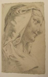 - NOTIZIE STORICO CRITICHE Il profilo richiama da un lato il disegno schedato al N.I.L. 354, attribuito a Cesare, dall'altro l'ovale con la Vergine a mezzo busto, olio su tela, di Angelo Ligari. La diferenza stilistica con il disegno sopra citato fa presumere che il presente foglio sia opera di Angelo piuttosto che di Cesare.