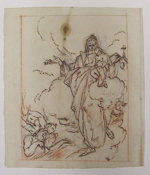 - NOTIZIE STORICO CRITICHE Poichè il disegno a penna ripassa con varianti quello a sanguigna, il foglio è certamente il "pensiero" ossia lo schizzo primitivo per un'opera da eseguirsi; non è possibile stabilire quale, nè se sia stata eseguita. La cappellina nel fondo è certamente un indizio per l'identificazione, ma non siamo in grado di decifrarla. L'attribuzione a Cesare è certificata dal tratto angoloso e dall'atteggiamento tipico della mano destra della Madonna.