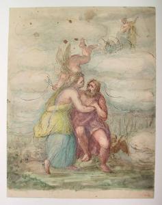 - NOTIZIE STORICO CRITICHE Il soggetto non è chiaramente identificabile, ma si tratta certamente di uno dei molti amori di Giove. La scena è concepita in un'unica composizione, che dal primo piano in basso conduce verso l'alto, nello sfondo, dove le figure sono sfumate o appena accennate.