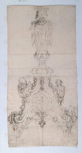 - NOTIZIE STORICO CRITICHE Il presente disegno raffigura la parte inferiore di un candelabro da chiesa, grande al vero: probabilmente il disegno "esecutivo" da consegnare all'argentiere.