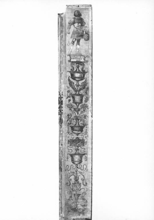 La fronte del pilastro è decorata a grottesche con girali, vasi sovrapposti e frutta. Alla sommità è raffigurato Davide con la testa di Golia e la fionda. Sul fondo giallo la decorazione è ottenuta in toni di grigio, azzurro e rosso scuro.