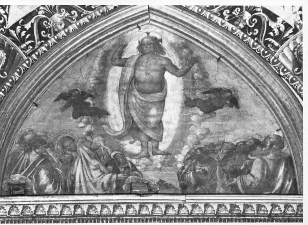 - NOTIZIE STORICO CRITICHE La Fanciulli Pezzini riscontrava nella decorazione del tiburio e nell'abside echi dello stile del Butinone, che sembrano tuttavia ancora meglio ravvisabili nella volumetria larga e nelle fisionomie marcate dei Dottori dell'abside. Cornice lignea dorata settecentesca,.