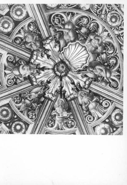 Dalla pigna centrale si diramano sei foglie di acanto, in direzione delle vele, e una conchiglia verso la campata di raccordo.