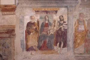 MADONNA CON BAMBINO IN TRONO CON SAN PIETRO E SAN GIOVANNI BATTISTA