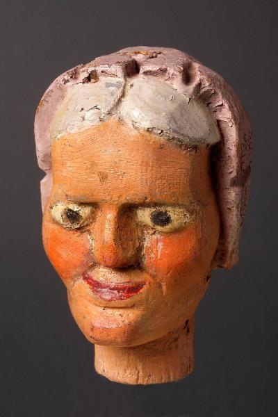 - NOTIZIE STORICO CRITICHE Teste prodotte artigianalmente in serie dalla prima metà dell'800 fino alla seconda guerra mondiale. Le varie famiglie di scultori si specializzavano nei soggetti che affluivano ad un committente che le acquistava.\nQuesti le cedeva a venditori ambulanti che riempivano le gerle di queste teste e di altri manufatti in legno prodotti nella zona (giocattoli,stoviglie,ciotole). Si ritrovano teste in collezioni di varie parti d'Europa dall'Inghilterra alla Grecia, dalla Francia ai Paesi dell'est Europa. In Italia sono presenti nelle seguenti collezioni pubbliche:Museo Teatrale alla Scala, Scuola Paolo Grassi, Museo Faraggiana di Novara, il Castello dei Burattini di Parma, Collezione Forlai del Comune di Forlì,e in numerose collezioni private, tra queste la più importante è la Collezione Mercuriali di Cesenatico. Queste teste, per la maggioranza di piccole dimensioni servivano poi per essere "vestite" e diventare burattini oppure con l'aggiunta successiva di un corpo (non prodotto in Val Gardena), diventare marionette. Le teste prodotte in dimensioni maggiori erano utilizzate da burattinai e marionettisti professionisti. Le teste dopo essere state pennellate di bianco, venivano dipinte a tempera e assumevano l'aspetto semilucido con l'aggiunta, successiva, di chiaro d'uovo. I soggetti relativi alle teste erano anche differenziati per aree culturali (Fagiolino,Sandrone,Gioppino: per l'Italia settentrionale; Guignol e Gnafron\nper la francia; Punk e Judy per l'Inghilterra, Kasperl per la Germania e i Paesi dell'Est Europeo), mentre le maschere della Commedia Dell'Arte ( Arlecchino, Brighella, Dottore, Capitano, Pantalone, ecc.), erano distribuite in tutta Europa.